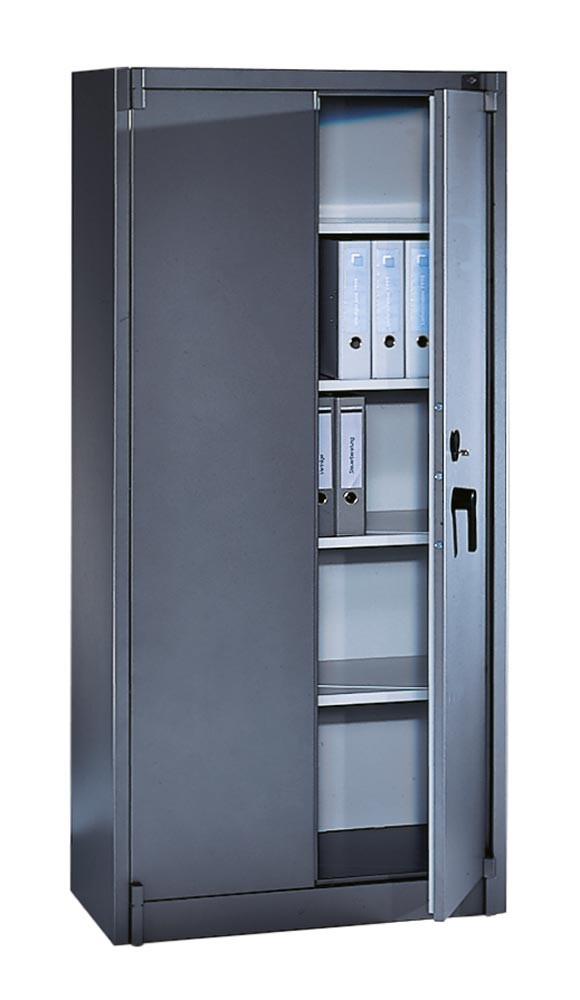 Feuergeschützter Flügeltürenschrank, BxTxH 930x500x1950 mm, 2-türig, 4 Fachböden, RAL 7021 schwarzgrau EP519407