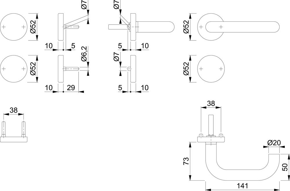 Feuerschutzgarnitur Paris FS-E138/42H/42HS Edelstahl F69 -/D für Türstärke 45-65 mm UG / blind rund DIN links / rechts E6446964