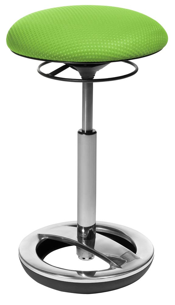 Fitness-Hocker mit Schwing-Effekt, Sitz-Durchm.xH 365x490-700 mm, Standfußring Aluminium poliert, Sitzfläche grün