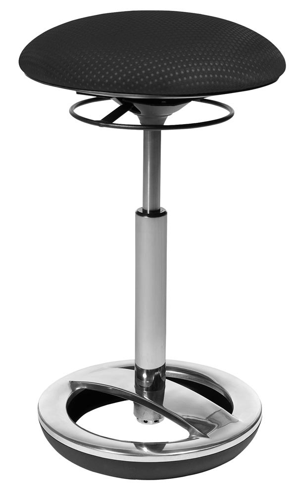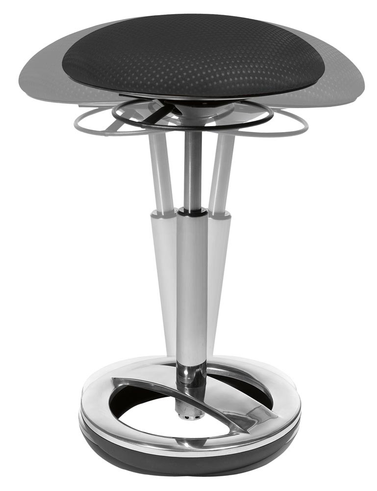 Fitness-Hocker mit Schwing-Effekt, Sitz-Durchm.xH 365x490-700 mm, Standfußring Aluminium poliert, Sitzfläche schwarz
