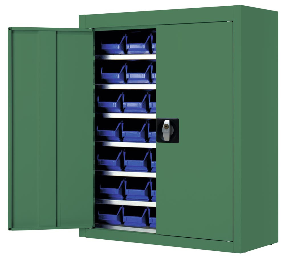 Flügeltürenschrank, BxTxH 680x280x820 mm, RAL 6011 resedagrün, Fachlast 50 kg, Anzahl Kästen: 42xGr. 5