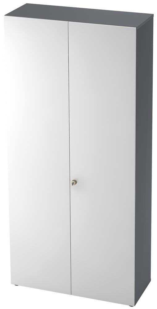 Flügeltürenschrank, BxTxH 800x420x2156 mm, 6 OH, 5 Böden, graphit/weiß