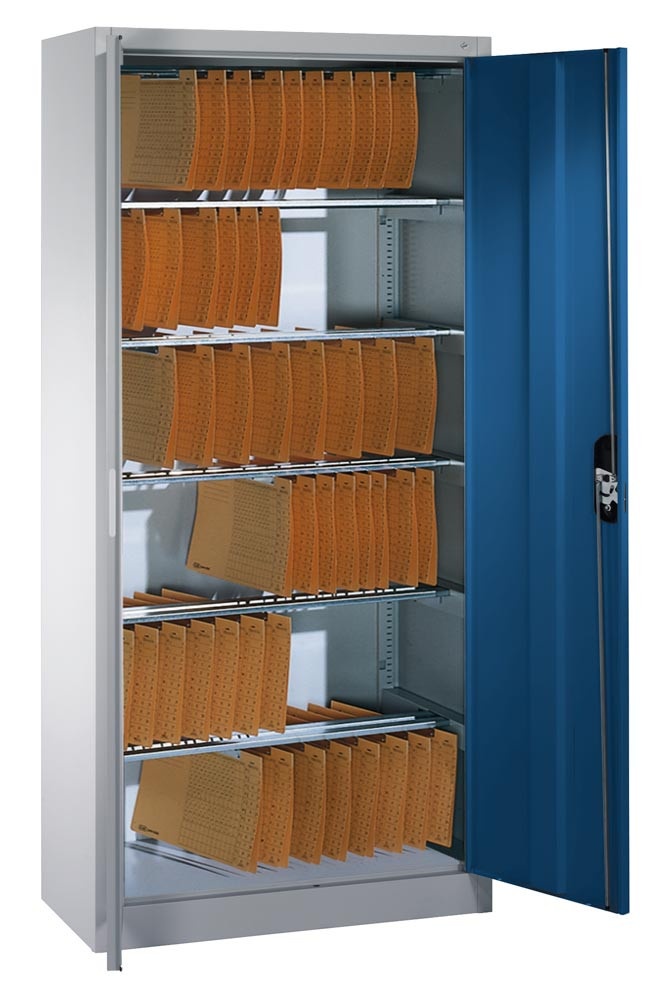 Flügeltürenschrank, BxTxH 930x400x1950 mm, 6 Pendelstangen System Elba/Leitz, RAL 7035/5010 lichtgrau/enzianblau