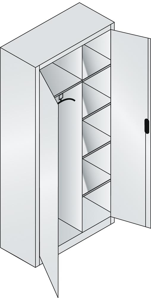 Flügeltürenschrank, BxTxH 930x500x1950 mm, 1 Hutboden, 1 Kleiderstange, RAL 7035 lichtgrau EP518933