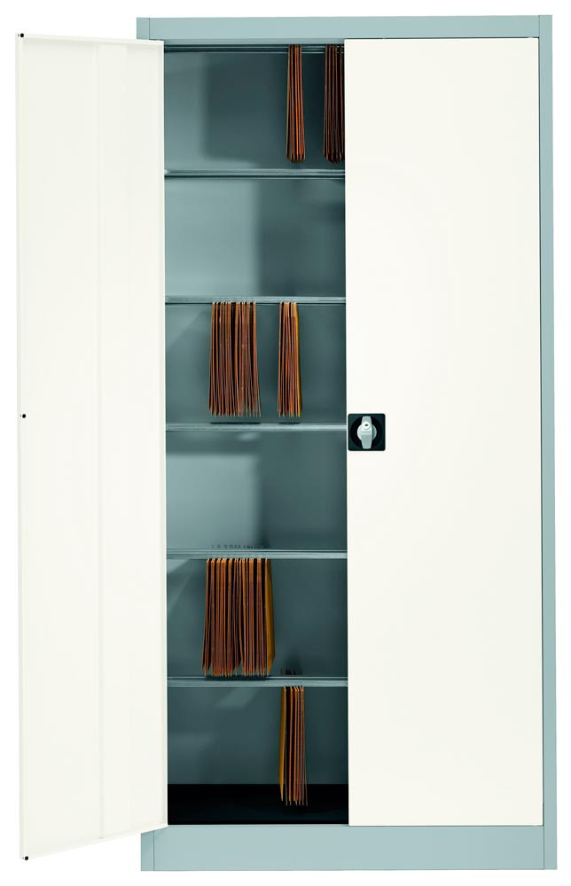 Flügeltürenschrank, BxTxH 950x420x1950 mm, 6 Pendelstangen Leitz/Elba, 42 kg Traglast/Pendelstange, RAL 9010 reinweiß EP532987