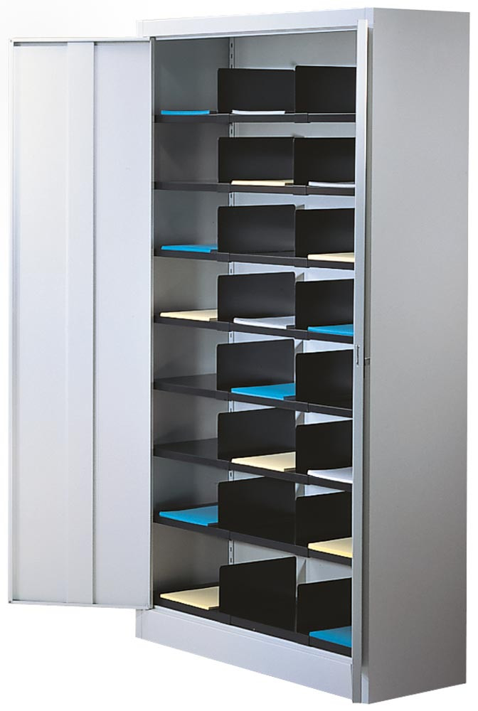 Flügeltürenschrank, BxTxH 950x420x1950 mm, 6 Pendelstangen Leitz/Elba, 42 kg Traglast/Pendelstange, RAL 7035 lichtgrau EP518334