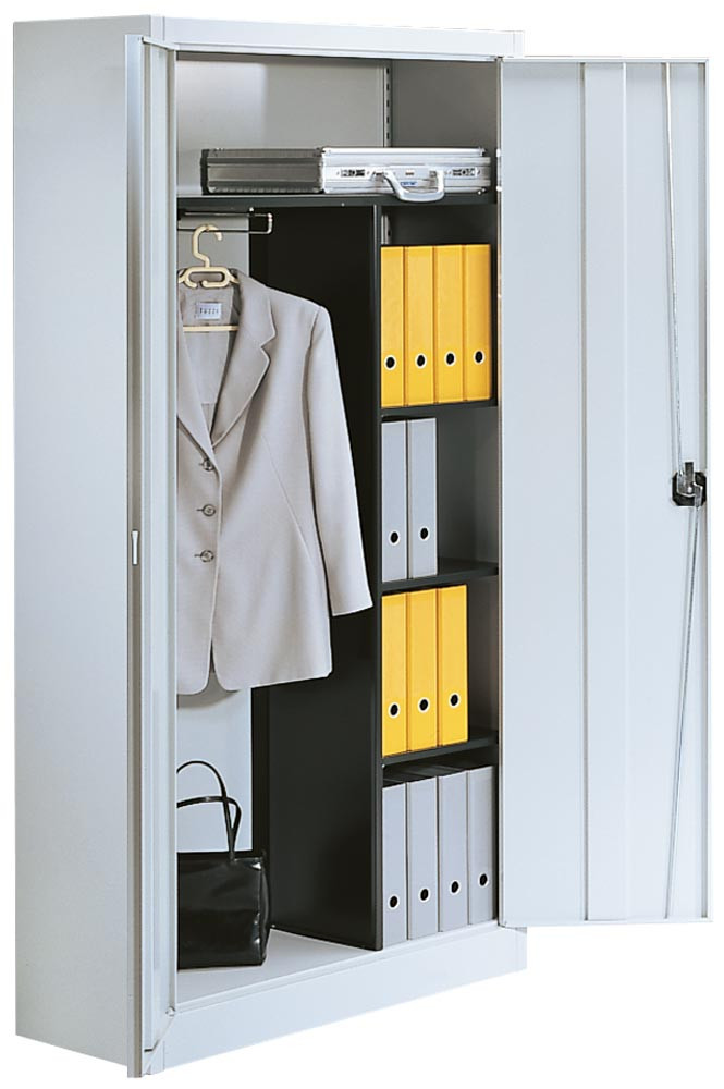 Flügeltürenschrank, BxTxH 950x420x1950 mm, 6 Pendelstangen Leitz/Elba, 42 kg Traglast/Pendelstange, RAL 9010 reinweiß EP532987