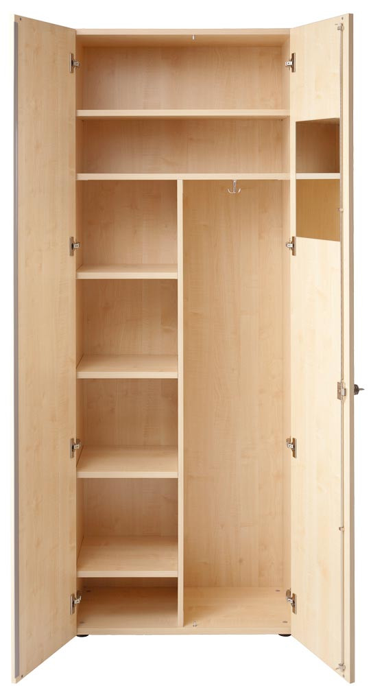 Flügeltürenschrank, mit Garderobe BxTxH 800x420x2156 mm, 2 OH, 6 Böden, buche