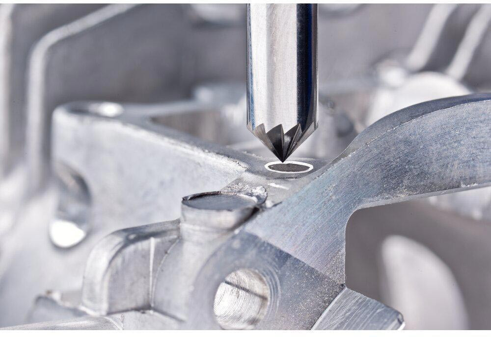 Hartmetall · Schaft-Ø 6 mm · (KSK nach DIN 8033) Kegelsenkform · kegelsenkförmiger Frässtift nach DIN 8032 mit Verzahnung nach DIN 8033 mit Winkel (90°) · die Ausführung KSK 0603/6 (Doppelender) ist beidseitig verzahnt und einsetzbar · zum flexiblen Senken und Anfasen geeignet · KSK=90°