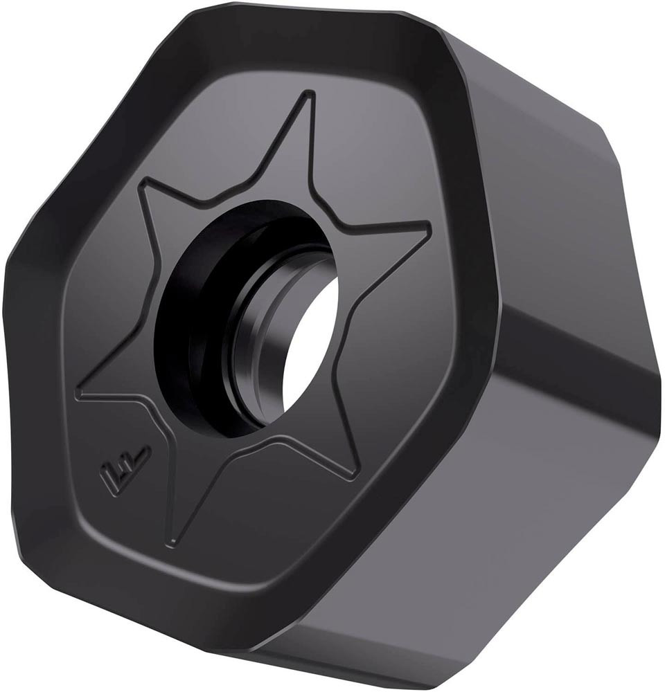 Doppelseitige Fräswendeschneidplatte HNGX 0906 · Hektagonal für eine maximale Schnitttiefe von 5.0mm · mit eine Indexierungsgenauigkeit gemäß ISO-Toleranzklasse-G und F Geometrie mit verrundeter und facettierter Schneidkante · 8215 PVD Beschichtung WC-Co Feinkornsubstrat in der ISO-Gruppe P10 -P20 zum bearbeiten von Stahl mit Planfräsern SHN09C