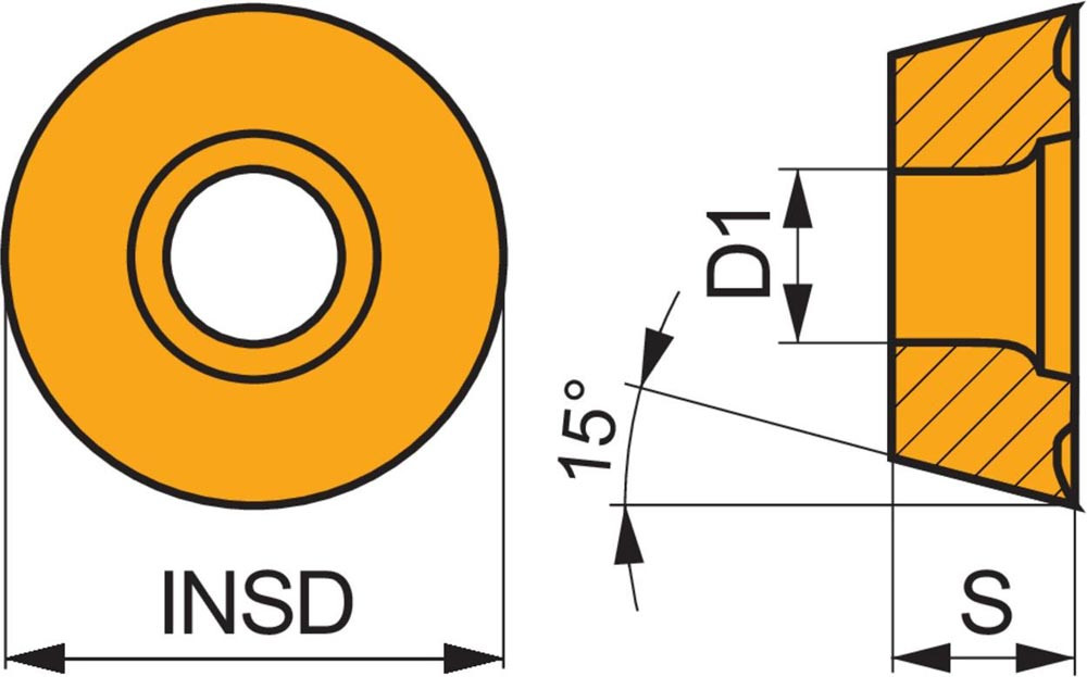 Fräswendeschneidplatte ISO RDET 12T3MOSN:M8340 Bohrungs-D. 4,4mm PVD beschichtet Farbe Gold