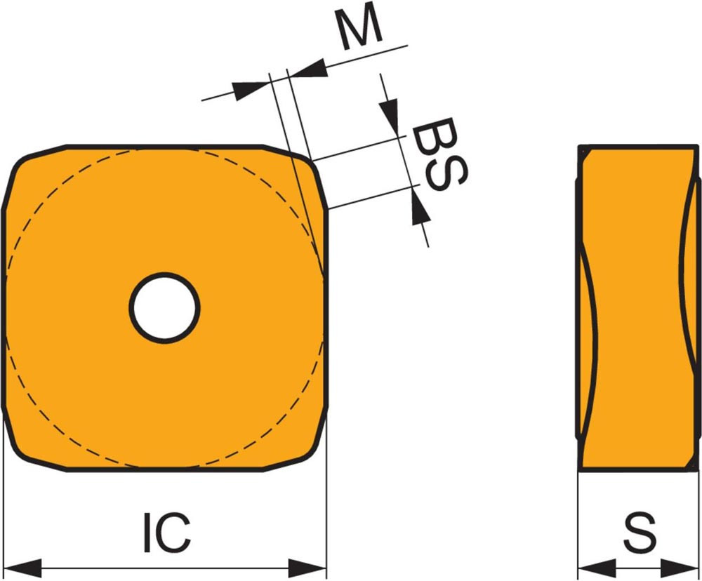 Doppelseitige Fräswendeschneidplatte SNHF 1504 mit Spanbrecher · Viereckig für eine maximale Schnitttiefe von 9.0mm · mit eine Indexierungsgenauigkeit gemäß ISO-Toleranzklasse-H und M Geometrie mit verrundeter und facettierter Schneidkante · M8340 PVD Beschichtung WC-Co Feinkornsubstrat in der ISO-Gruppe P25 -P50 zum bearbeiten von Stahl