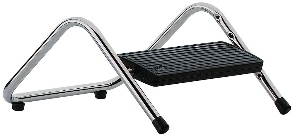 ∙ Starker, glanzvernickelter Stahlrohrrahmen ∙ Standsichere Gummifüße ∙ Rutschfeste, schwarze Trittplatte ∙ Vierfach höhenverstellbar