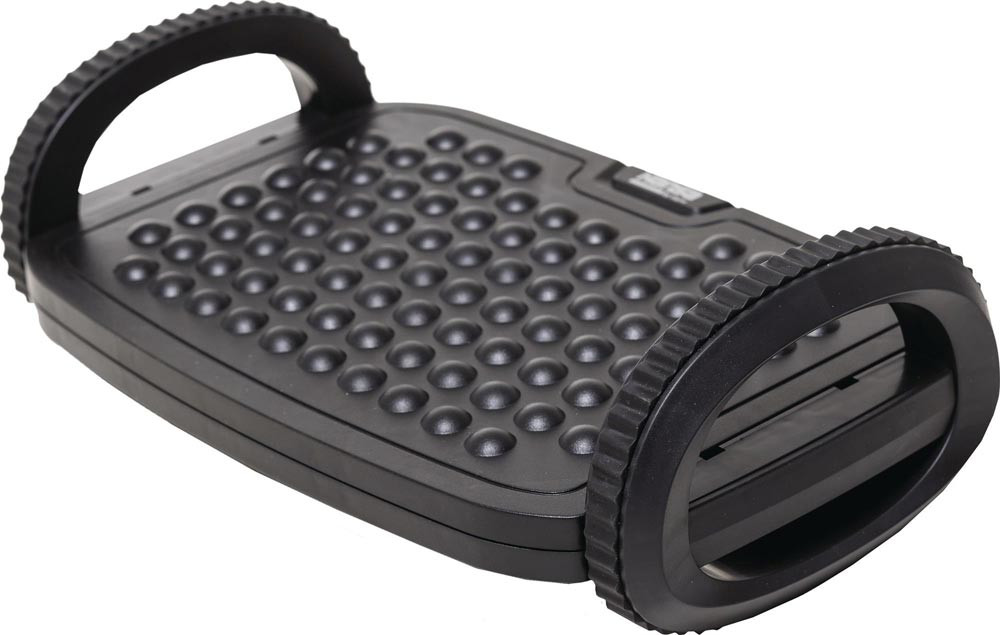 entlastet Beine und Füße · für eine entspannte Haltung der Beine und des unteren Rückens · fördert die richtige Sitzposition · aus 100 % HIPS und TPR Recycling Material · 2-fach höhenverstellbar 70/135 mm · neigungsverstellbar stufenlos bis 40° · Oberfläche mit Noppen zur Fußsohlenmassage