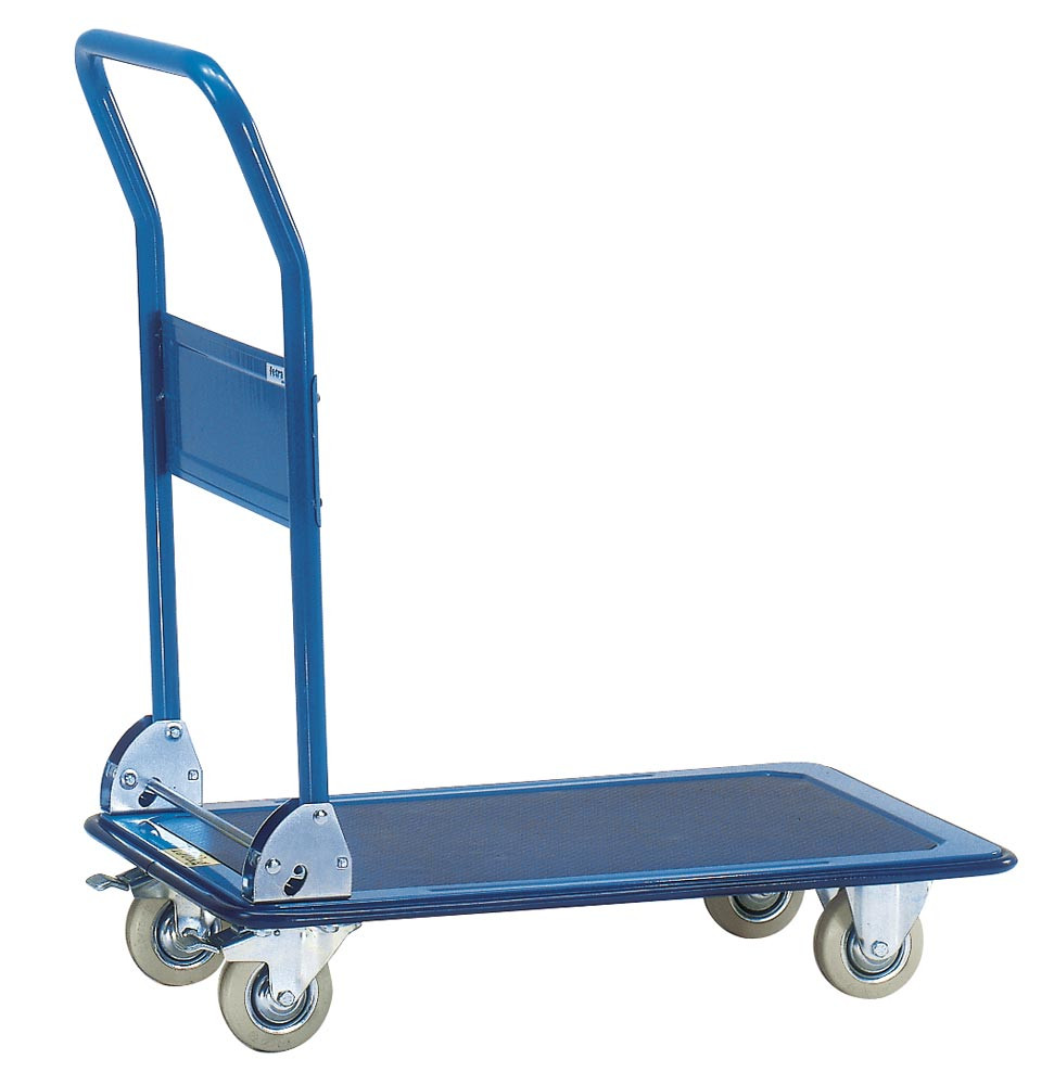 Ganzstahl-Plattformwagen, Ladefläche LxB 740x480 mm, mit klappbarem Rohrschiebebügel, Traglast 150 kg EP557861