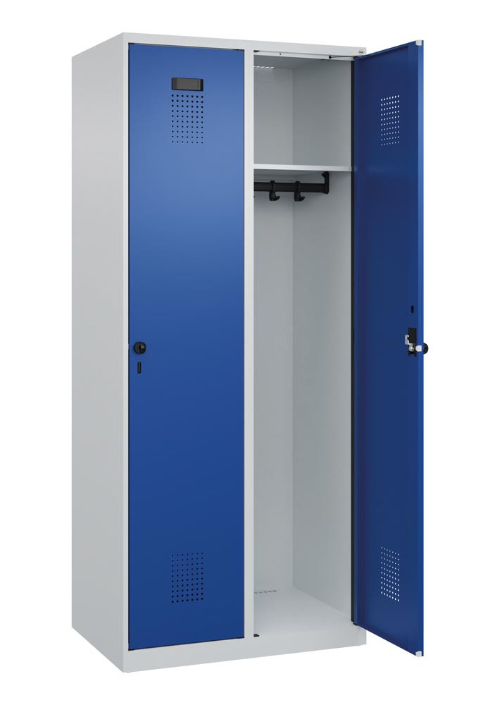 Garderobenschrank, bodenstehend, 2 Abteile, Abt.B 400 mm, Drehriegel, BxTxH 800x500x1850 mm, RAL 7035/5010