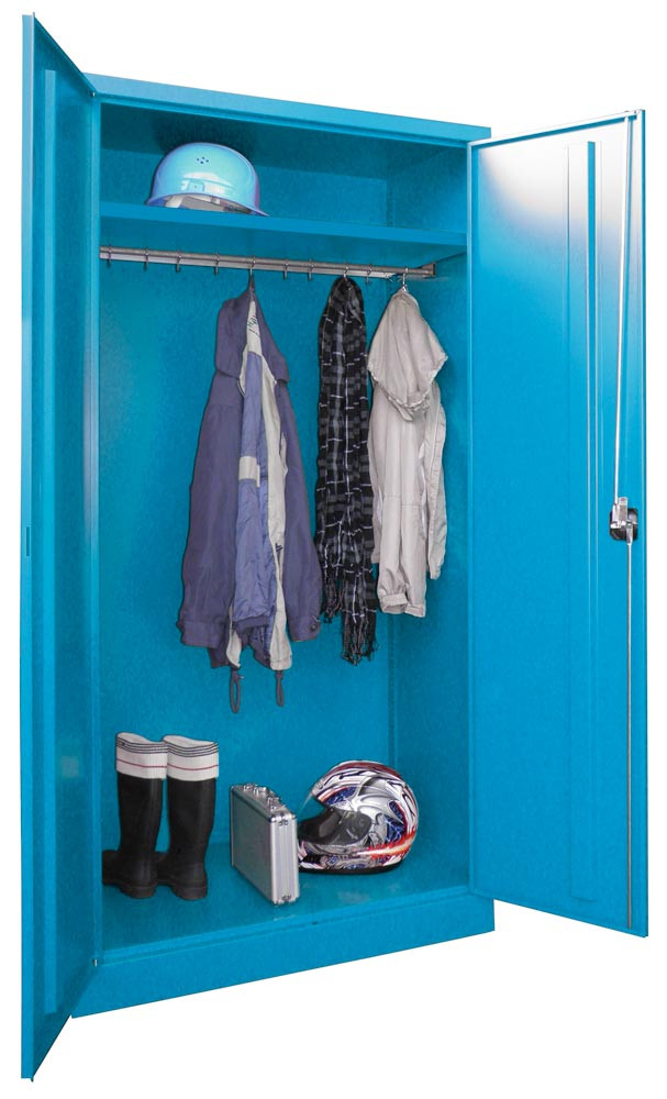 Garderobenschrank, durchg. beschichteter Hutboden, darunter Stange mit 10 Haken, Zyl.-Schl., BxTxH 1000x500x1950 mm, RAL 5010 EP528623