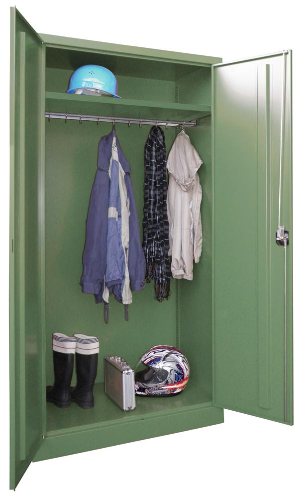 Garderobenschrank, durchg. beschichteter Hutboden, darunter Stange mit 10 Haken, Zyl.-Schl., BxTxH 1000x500x1950 mm, RAL 5015 EP528686