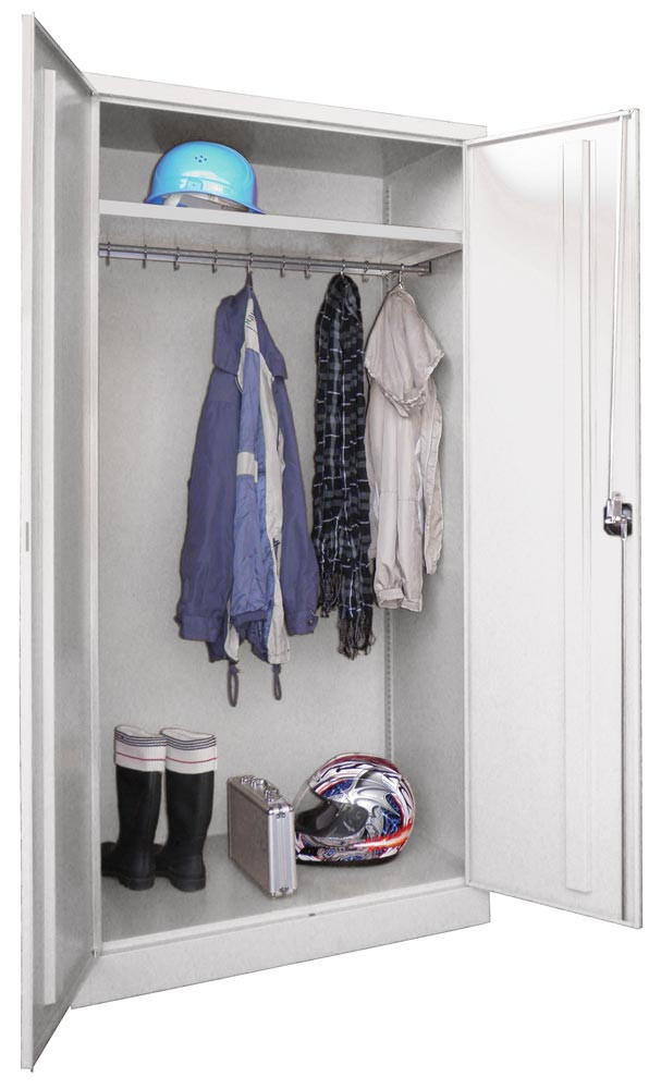 Garderobenschrank, durchg. beschichteter Hutboden, darunter Stange mit 10 Haken, Zyl.-Schl., BxTxH 1000x500x1950 mm, RAL 7035 EP528775