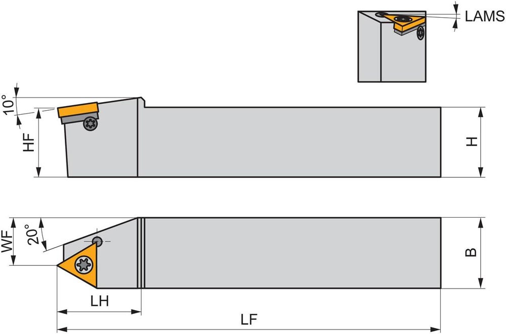 Schraubgeklemmte Gewindedrehhalter mit 1.5° Helixwinkel zum spannen einer dreieckigen Wendeschneidplatte mit einem Innenkreisdurchmesser von 12.7mm (Bezeichnung TN 22EN.. ) · rechte Sonderausführung mit Zylinderschaft · 25mm Werkzeughöhe 25mm Breite und 150mm Gesamtlänge zum Außengewinden