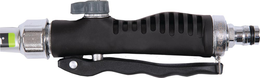 mit Hebelventil · ermöglicht Impulsgießen oder mit betätigter Arretierung eine durchgehende sanfte Bewässerung von Pflanzen · Schutz der Hand vor kaltem Wasserfluss · stufenlose Einstellung der Wassermenge durch Wassermengenregulierung · eingelegter Schmutzfilter verhindert Ablagerungen · Bajonett-Anschluss für bequemen Gießkopfwechsel per Klick, kompatibel mit allen GEKA plus Gießköpfen mit Bajonett-Anschluss · Metallkorpus · Gerätestecker aus verchromtem Messing · Gießkopf der Größe M