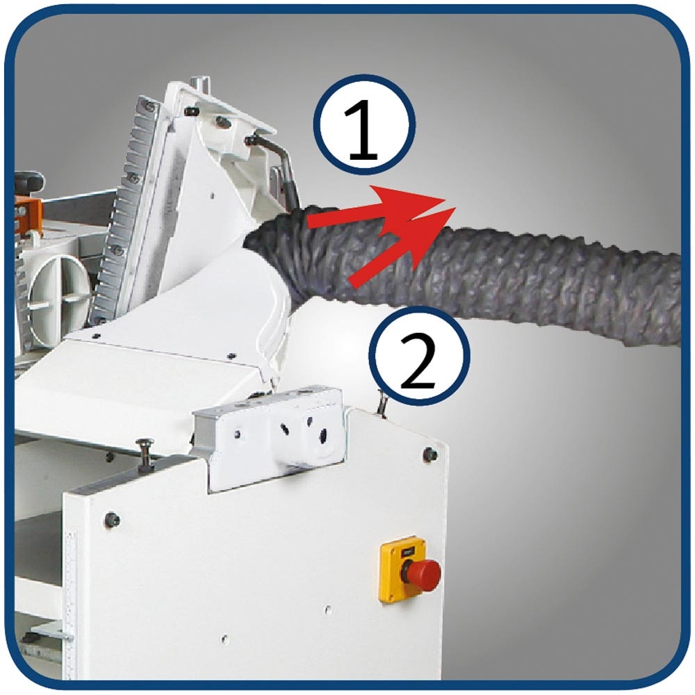 Ausführung: Hobelmessersystem mit TERSA Messerwelle für geräuscharmen Lauf ∙ Schräg verzahnte Stahleinzugswalze für konstanten und gleichmäßigen Holzeinzug ∙ Lange Abrichttische aus einem Stück ermöglichen leichtes Abrichten der Werkstücke ∙ Großer Abrichtanschlag kann beim Öffnen der Abrichttische in seiner Position bleiben ∙ Nach hinten öffnende Abrichttische ∙ Leistungsstarker Industrie-Motor ∙ Robuste Stahl-/Graugusskonstruktion ∙ Arbeitstische sind aus Grauguss, nachgeglüht und spannungsfrei ∙ Tischlippen für geräuscharmen Lauf