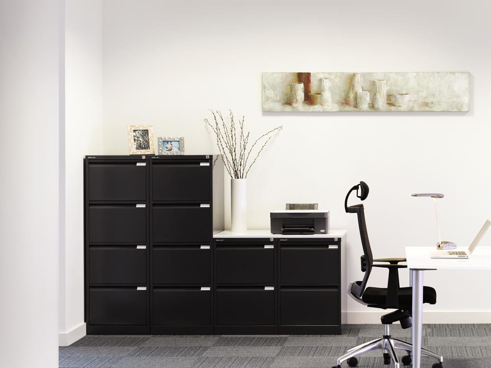 Hängeregistraturschrank, BxTxH 413x622x711 mm, einbahnig, 2 Schubladen, Griffleiste, schwarz