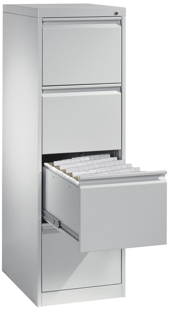 Hängeregistraturschrank, BxTxH 433x590x1357 mm, einbahnig, 4 Schubladen, Griffleiste, RAL 7035 lichtgrau EP517908
