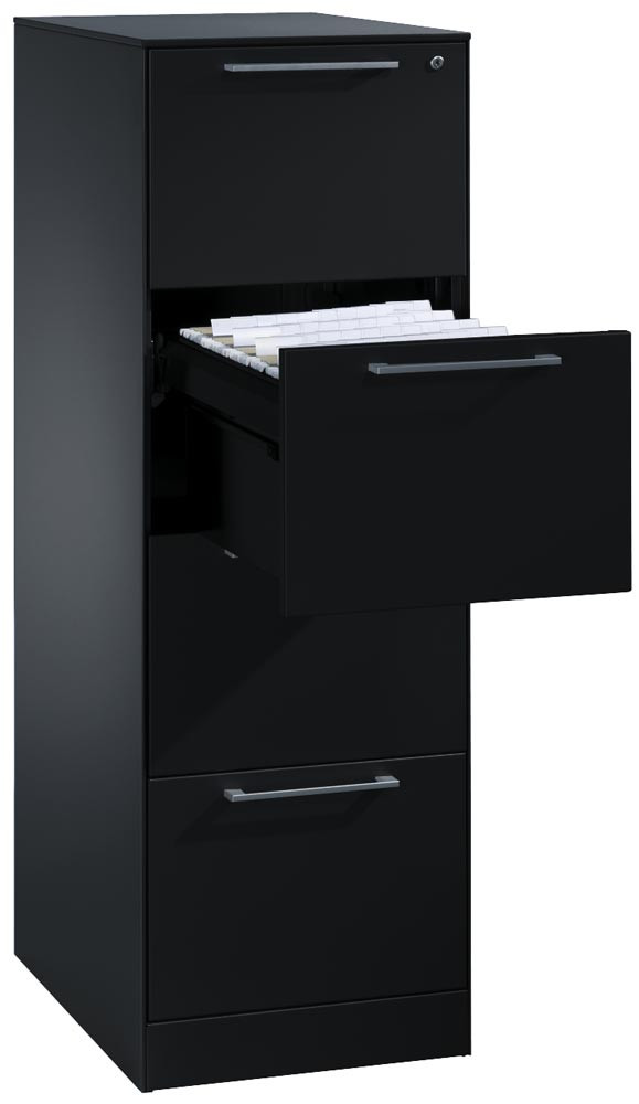 Hängeregistraturschrank, BxTxH 440x600x1298 mm, einbahnig, 4 Schubladen, Bügelgriff, RAL 7021 schwarzgrau
