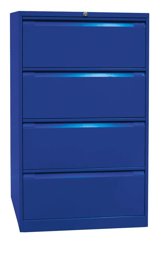 Hängeregistraturschrank, BxTxH 800x622x1321 mm, doppelbahnig, 4 Schubladen, Griffleiste, oxfordblau