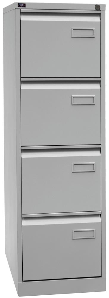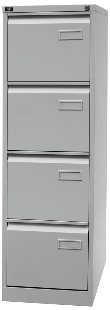 Hängeregistraturschrank LIGHT, BxTxH 413x622x1321 mm, einbahnig, 4 Schubladen, Griffleiste, lichtgrau