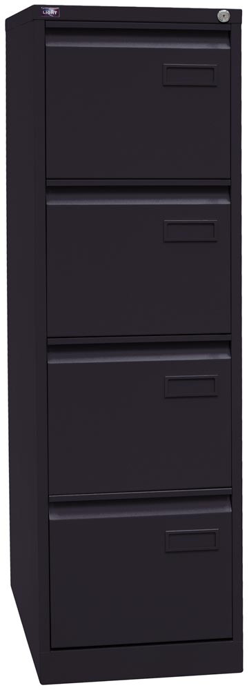 Hängeregistraturschrank LIGHT, BxTxH 413x622x1321 mm, einbahnig, 4 Schubladen, Griffleiste, schwarz