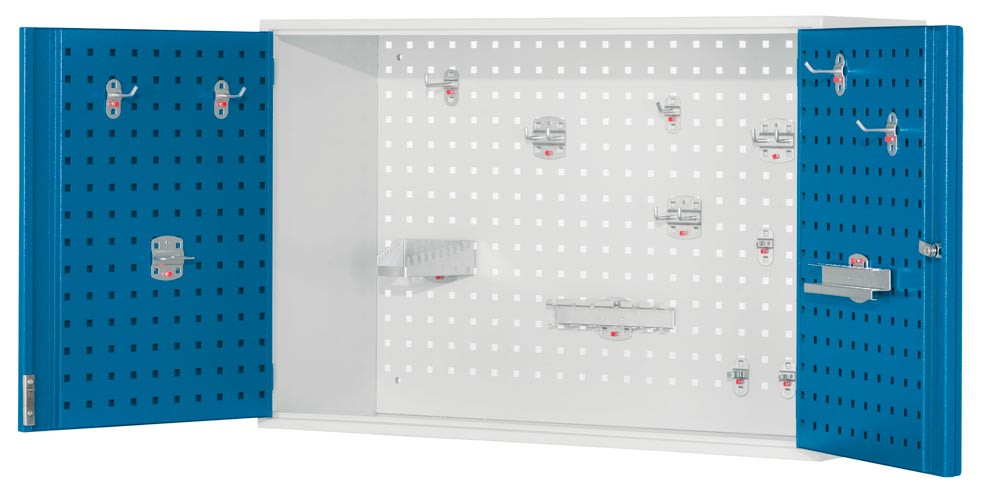 Hängeschrank, Rückwand mit Lochplatten, Türinnenseiten mit Schlitzpl., BxTxH 920x335x620 mm, RAL 7035/5010 EP517752