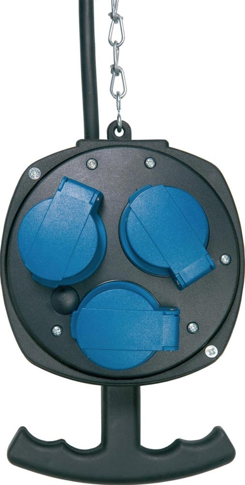 Gehäuse aus Spezialkunststoff mit Handgriff + 3 m Stahlkette · Anschlussleitung 3 m · IP44