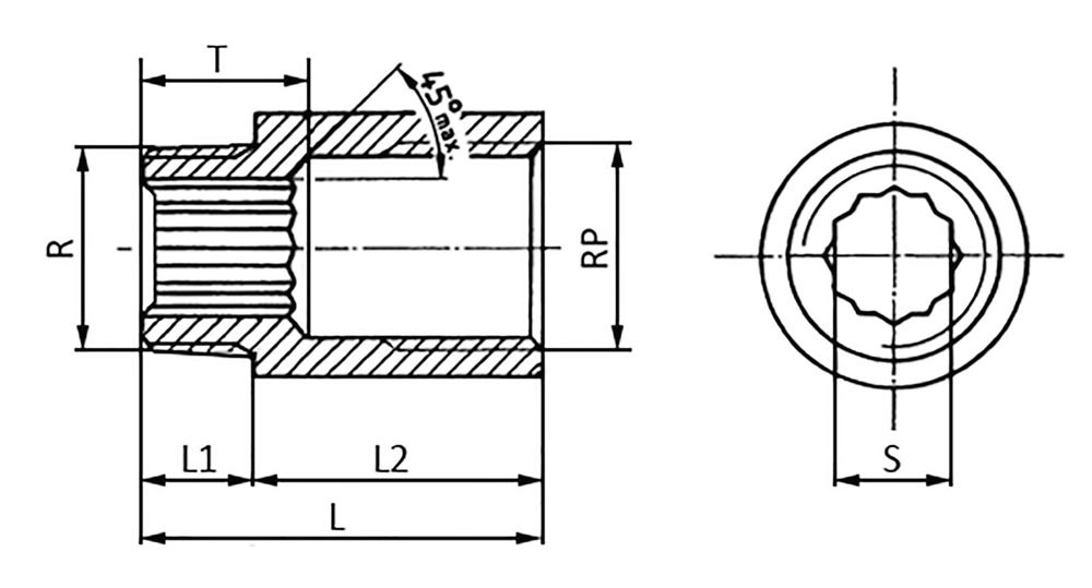 Hahnverlängerung DIN 3523 EN 10226-1 NPS=3/4 3523 L 44 mm L1=14 mm L2=30 mm E6432973