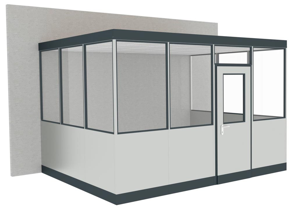 Hallenbüro, 3-seit. an Gebäudewand, ohne Boden, 2 Leuchten, BxTxH 3045x3050x2630 mm, RAL 9002 grauweiß, Rahmen RAL 7016 anthrazit EP520676