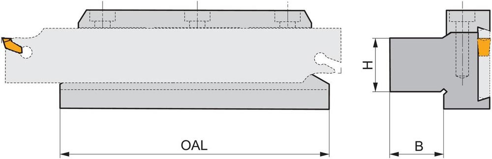 47-D 4040 ist ein Werkzeughalter zur Aufnahme von Schneiden zum Ein- und Abstechen. Körper für längere Standzeit oberflächenbehandelt.