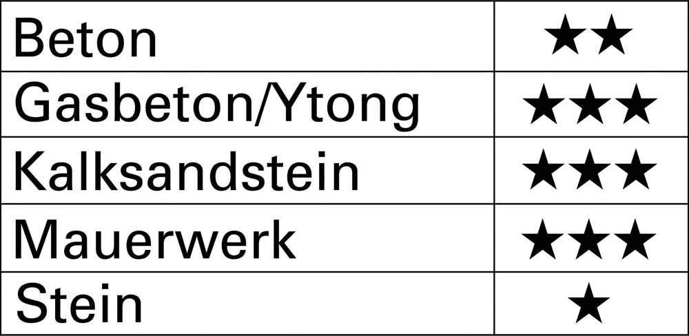 Anwendungsbereiche: Beton, Kalksandstein, Mauerwerk (für alle Beton- und Steinanwendungen)