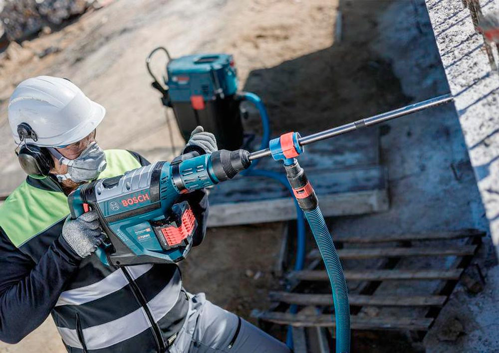 Bohren in Stahlbeton mit verbesserter Staubreduzierung · hocheffizienter Abtransport von Staub mit Bosch Particle Control · durchdringt Stahlbeton mit einem Voll-Carbide-Kopf mit 4 Schneidern · bohrt Löcher und entfernt gleichzeitig Staub - beschleunigt und vereinfacht die Installation chemischer Dübel · für Bauarbeiter und Installateure entwickelt, die Löcher für chemische Dübel bohren müssen · mit 4-Schneider-Vollhartmetallkopf und einem robusten Staubsaugerrohr · mit SDS Clean max Anschluss, der für alle SDS Clean max-8X Bohrer geeignet und ebenso einfach zu montieren wie abzunehmen ist · bei Verstopfung leicht zu reinigen: einfach das Absaugrohr vom Bohrer abnehmen · neue Technologie zur Staubreduzierung, mit der Löcher für chemische Dübel schneller vorbereitet werden können