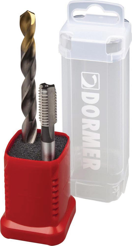 Kernlochbohrer + Gewindebohrer-Set Nr.14 ( 2 teilig ) im Kunststoff DUO Pack mit Aufhängelasche zum herstellen ISO- Metrischer Gewinde M12 · bestehend aus 1 HSS unbeschichteten gerade genuteter hand-gewindebohrer E500-NO3 · Anschnittform C mit 2-3xP Gewindeanschnitt und 1 HSS TiN-tip beschichtet Spiralbohrer mit Zylinderschaft A002 für einen empfohlenen vorbearbeiteten Lochdurchmesser 2.5xD Sacklochgewinde in Baustahl und Kohlenstoffstahl und Reinaluminium oder Aluminiumguss