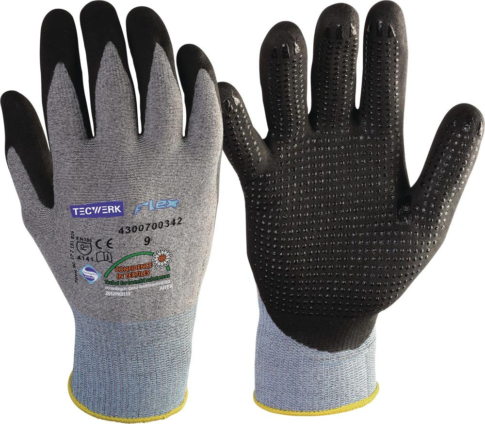 Handschuhe Flex Größe 9 grau/schwarz EN 388 PSA-Kategorie II