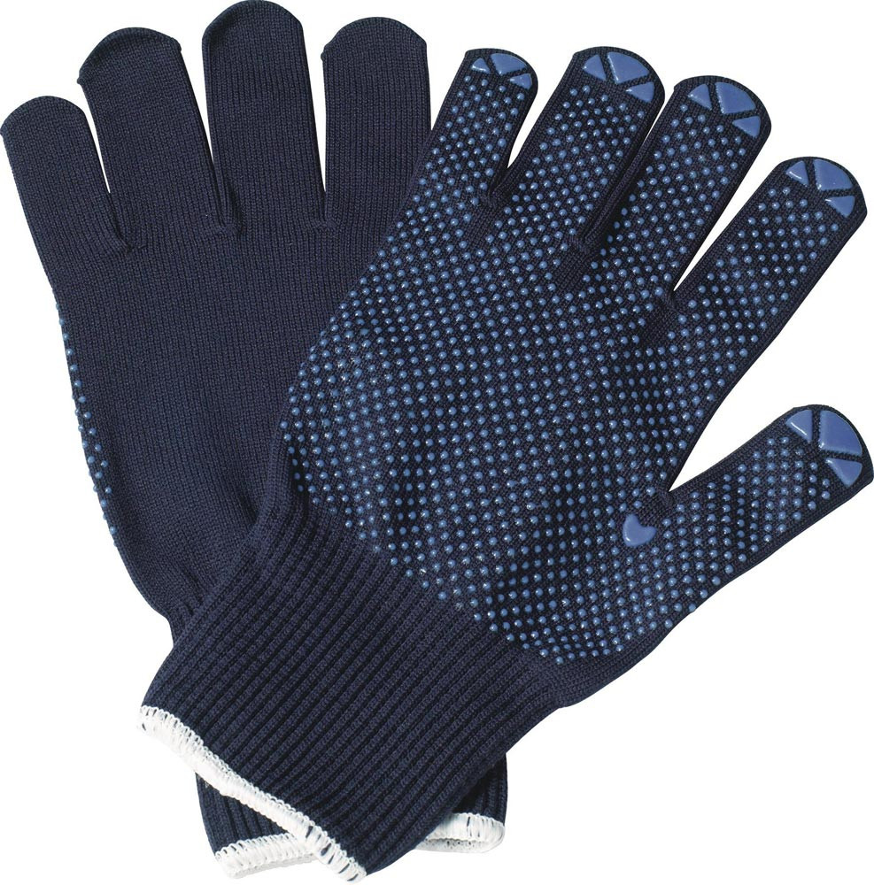 nach EN 388 · Kat. II · Material: blattiert, innen Baumwolle, außen Polyamid · mit rutschhemmender Punktbenoppung, blau · Fingerspitzenverstärkung · ausgezeichnete Passform · sehr gute Haltbarkeit · durch die Färbung auch für Schmutzbereiche geeignet · 13er Teilung · Anwendung: leichte bis mittelschwere mechanische Tätigkeiten, Kunststoffbearbeitung, Automobilbereiche