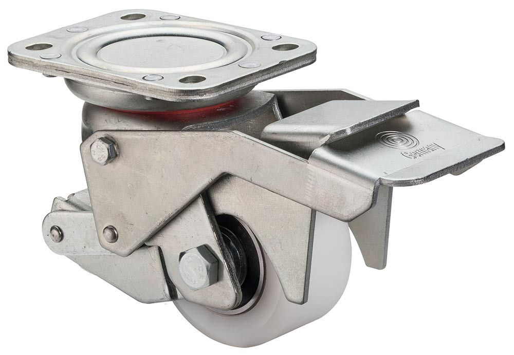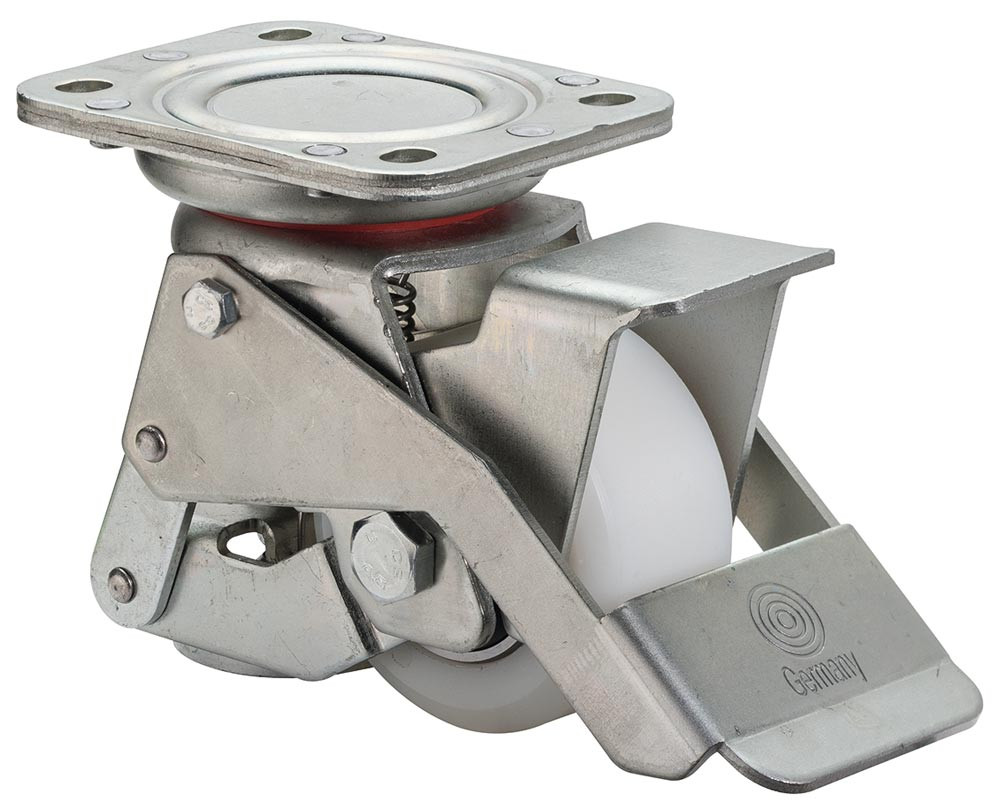 Hebe-Lenkrolle, Polyamid, Durchm. 80 mm, Nivellierhöhe 115-128 mm, Traglast 400 kg, Kugellager, Schraubplatte