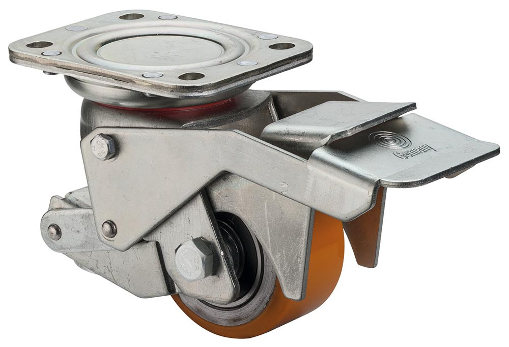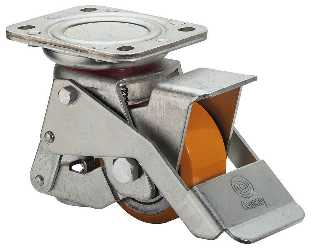 Hebe-Lenkrolle, Polyurethan, Durchm. 80 mm, Nivellierhöhe 115-128 mm, Traglast 400 kg, Kugellager, Schraubplatte EP551204