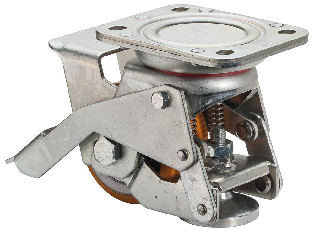 Hebe-Lenkrolle, Polyurethan, Durchm. 80 mm, Nivellierhöhe 115-128 mm, Traglast 400 kg, Kugellager, Schraubplatte
