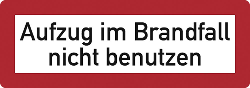 | Ausführung Brandschutzschild | Aufzug im Brandfall nicht benutzen |