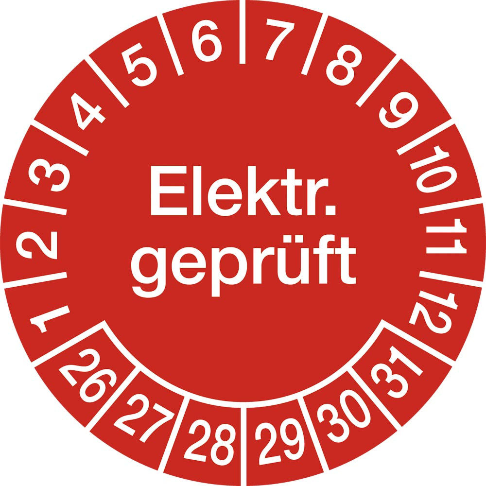 Hinweisschild, Elektr. geprüft 2026, PVC-Folie, rot, Durchm. 30 mm, VE 10 Stück, Mindestabnahme 10 VE