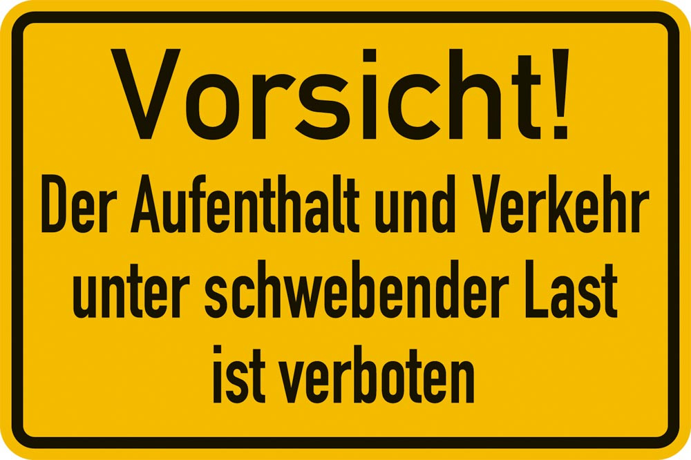 | Ausführung Warnschild | Vorsicht! Der Aufenthalt und Verkehr unter schwebender Last ist verboten |