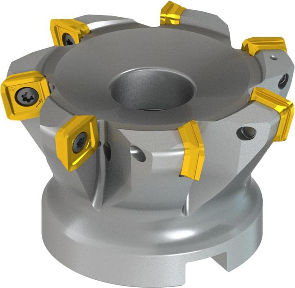 Äußerst vielseitiger 12° Hochvorschubfräser mit einseitigen SO.. 12-Wendeplatten mit APMX von 1,9 mm Durchmesser 62.3 mm mit 12° Anstellwinkel und 27 mm Anschlussbohrung nach DIN 8030-C · 50 mm Funktionslänge · Innere Kühlmittelzufuhr und Ungleichteilung zum Planfräsen · Kopierfräsen · Rampenfräsen · Helixfräsen · Tauchfräsen und progressiven Tauchfräsen.