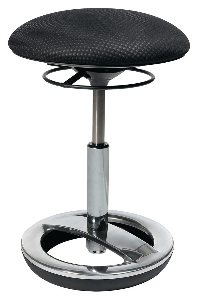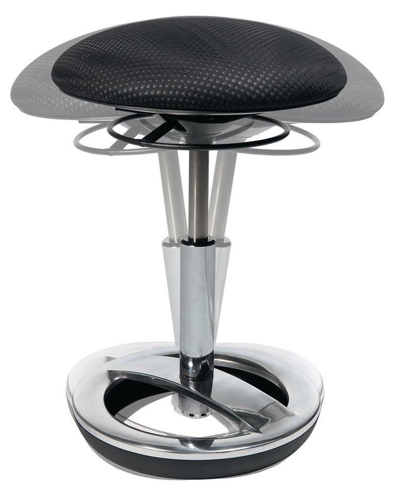 vielseitiger Einsatz, für ergonomisches und bewegliches Sitzen · Standfußring Aluminium poliert · horizontaler Schwingeffekt durch ein bewegliches Reifenelement aus TPU (Thermoplastische Polyurethane) · stufenlose Sitzhöhenverstellung über Ringauslösehebel unter dem Sitz · Sitz-Ø 365 mm · Sitzhöhe 440 - 570 mm
